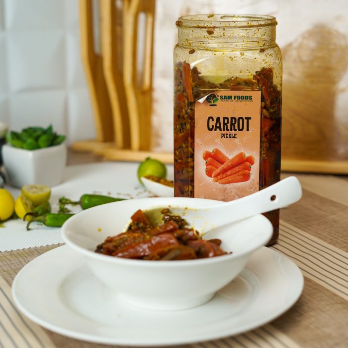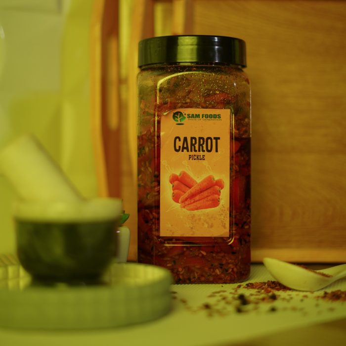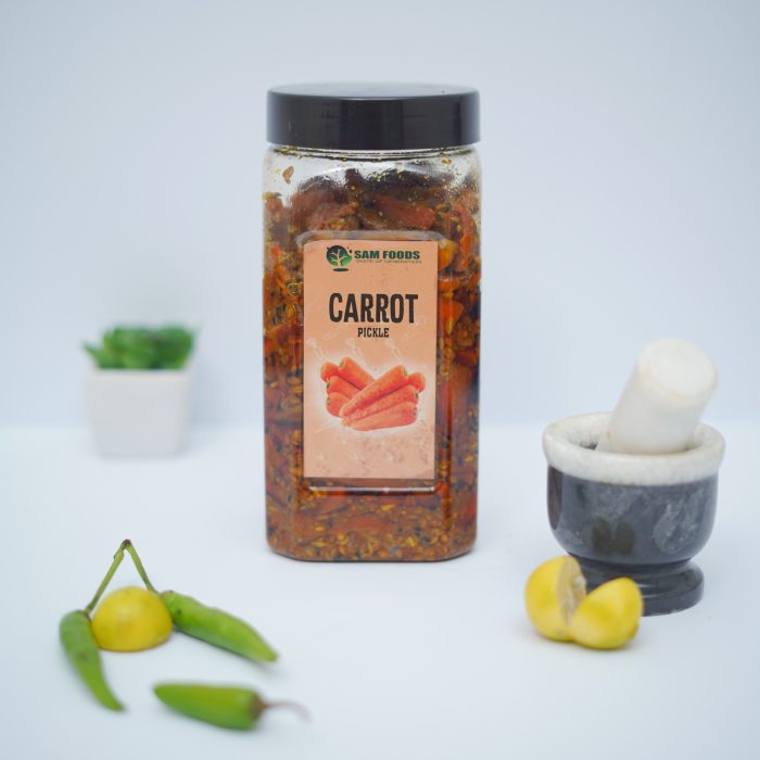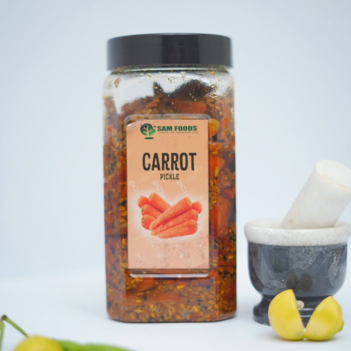 Enjoy the homemade taste with Sam Foods Carrot Pickle – 1000g pack.
