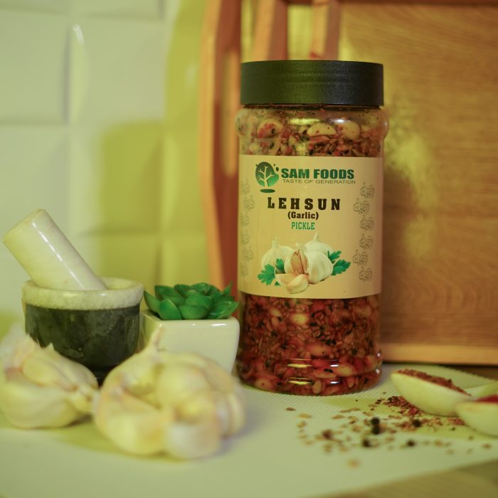 Add flavor and wellness with Sam Foods Garlic Pickle – 900g pack.